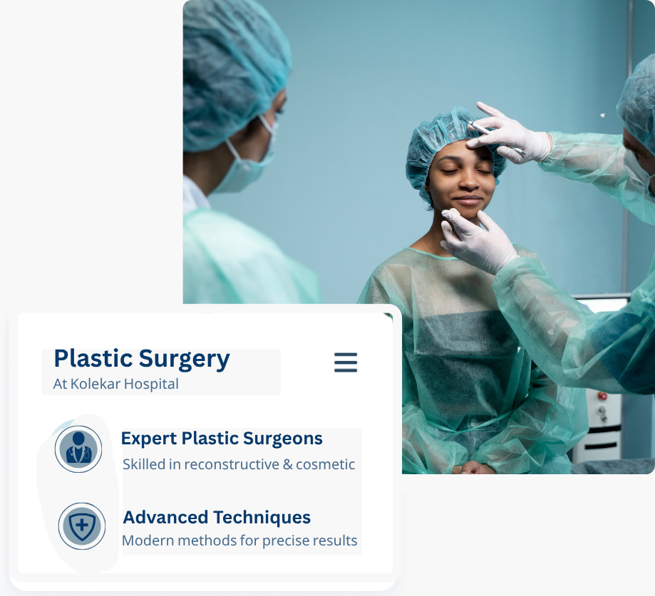 Plastic Surgery focuses on improving appearance and reconstructing body structures affected by injury, birth defects, or medical conditions. Our plastic surgery services combine precision, safety, and modern techniques to deliver natural-looking results and improved confidence.